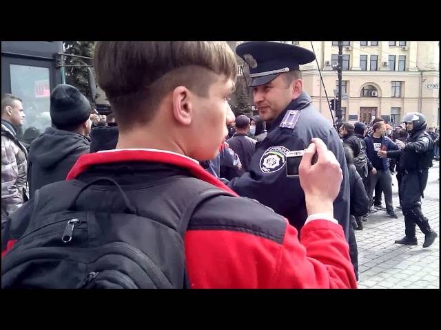 Накопив силы в размере нескольких тысяч человек, пророссийский митинг перешел в активную фазу. Ровно в 21.00 люди с триколорами и георгиевскими ленточками перешли проезжую часть улицы Сумской и двинулись ко входу в здание ХОГА.