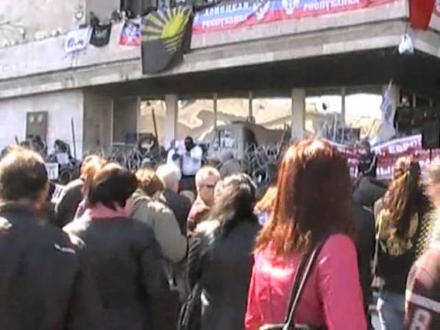 Донецк продолжает жить в абсолютно новом для себя протестном ритме. И если в отдаленных и спальных районах города народные волнения малозаметны , то ближе к центру градус "революционных настроений" зашкаливает. Вот две молоденькие девчушки общаются на троллейбусной остановке и одна другой говорит: "Вечером мы с Сашей не сможем зайти гости , он "на войну" собирается". Вот бабулька, на этой же остановке , забираясь в салон, спрашивает у кондуктора: "Я до "Белого дома" этим маршрутом доеду, ребятам пирожков испекла, угощать везу?".
