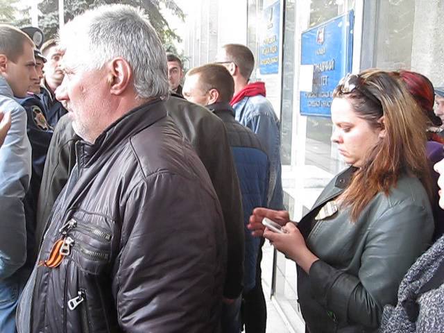 Ранее, 17 апреля, на митинге возле Горловского горсовета депутат Владимир Рыбак сделал попытку снять флаг Донецкой Народной Республики и установить украинский, но был блокирован митингующими и подошедшими им на помощь людей в камуфляже с масками на голове.