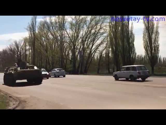 24 апреля жители российского города Новошахтинск, что в 10 километрах от границы с Украиной, сняли на видео вход в город танковой колонны российской армии.