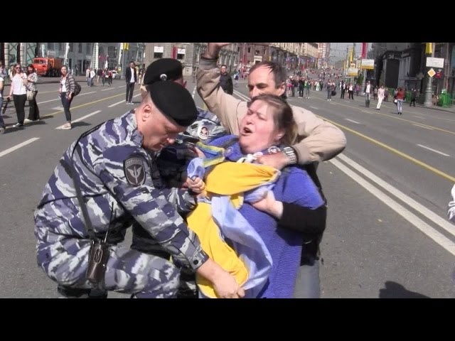 1 мая в Москве прошла акция в поддержку Украины. В ней приняли участие всего девять человек. Несмотря на это, активистов задерживали правоохранители. Об этом сообщает Дождь.