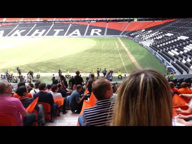 Тут же включили "гудок" - через динамики. Параллельно "включили" и президента "Шахтера" – видеороликом на экране. Впрочем, болельщиков, сотрудников клуба и стадиона, которые собрались на акцию, это не расстроило. Они вовсю размахивали оранжевыми "клубными" флажками, которые всем присутствующим выдали на входе.