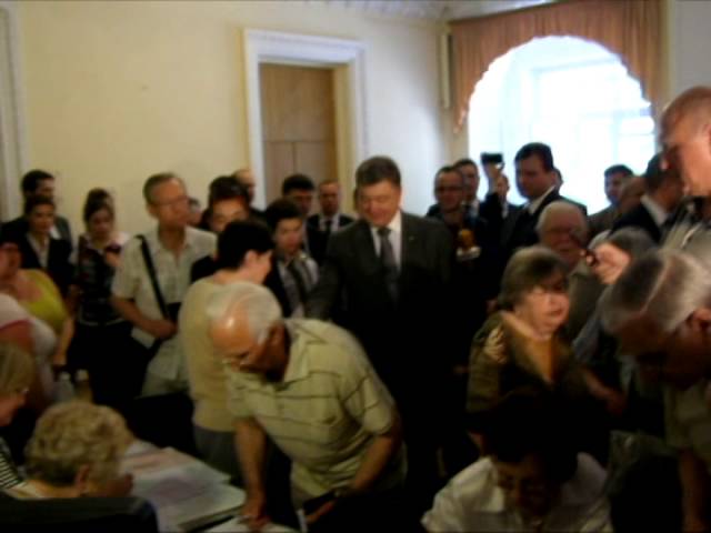 Порошенко голосовал в бывшем медпункте в Доме офицеров, куда свозили раненых во время революции на Майдане. На выборы он пришел вместе со своей большой семьей – женой Мариной и четырьмя детьми.