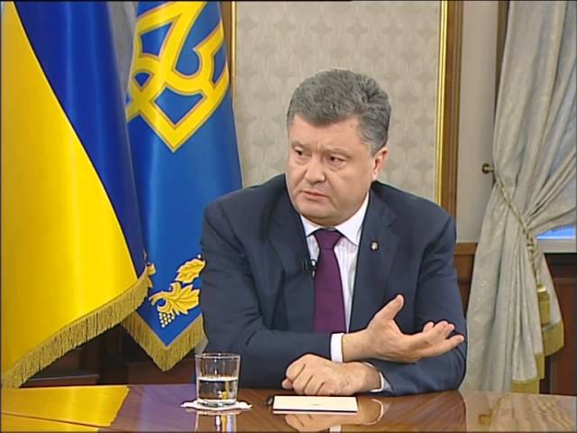 1 августа Петр Порошенко дал свое первое за время президентства большое интервью украинским телеканалам. По времени оно заняло около 44 минут. Президент отвечал на вопросы пяти журналистов. Вопросы задавали журналисты Первого национального, Интера, 1+1, ICTV и 5 канала.