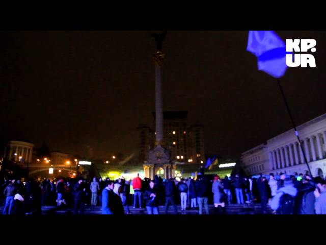 Поздно вечером в соцсетях кинули клич: "все, кто за евроинтеграцию, выходим на Майдан". Причиной стало заявление правительства Николая Азарова о приостановке подготовки к подписанию Соглашения об ассоциации с ЕС, запланированное на 25 ноября в Вильнюсе. На призыв откликнулись пару сотен киевлян - гражданские активисты, журналисты и молодежь. На Майдане появились первые флаги Украины и Евросоюза.