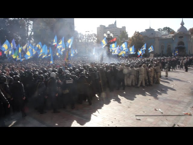 12.30 НА УЛИЦЕ, КИЕВ: началась драка. Митингующие атакуют милиционеров цепями и палками, те отвечают дубинками. Уже есть пострадавшие.