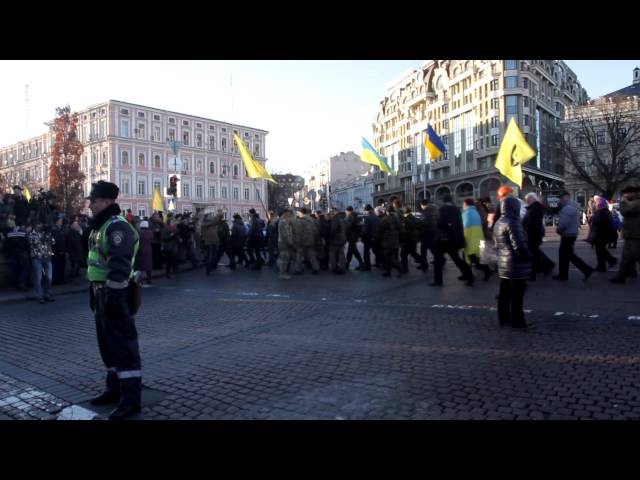 Несколько тысяч активистов Майдана собрались на Михайловской площади. После освящения флагов и знамен, люди выстроились в колонны по четыре человека и двинулись в сторону Софиевской площади. Возглавляет шествие Андрей Парубий.