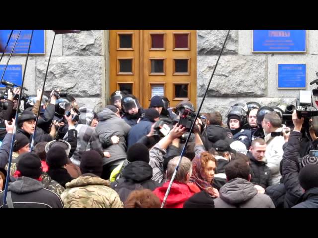 В пикете принимают участие зоозащитники, активисты “Правого сектора”, Евромайдана, Автомайдана. Около 15 активистов требуют пропустить их на заседание сессии. Они пытаются прорваться через несколько рядов милиционеров, которые выстроились возле главного входа в горсовет. Произошло несколько столкновений. Милиционеры сдерживают натиск пикетчиков. Стражи порядка окружили все входы в горсовет. Окна некоторых помещений на первом этаже заложены мешками с песком.