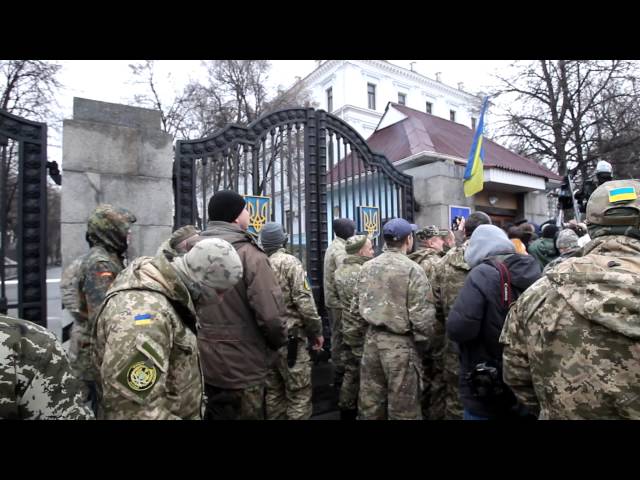 В пятницу утром, 30 января, возле Министерства обороны собралось примерно 300 человек в камуфляже. Они выступали против расформирования добровольческого батальона "Айдар" и включения его в состав вооруженных сил, как отдельного подразделения. Причиной для акции протеста стала ситуация с печатью батальона. Конфликт внутри батальона привел к тому, что временно у бойцов два начальника. на самой акции раздавали листовки, мол, протестуют против расформирования "Айдара".
