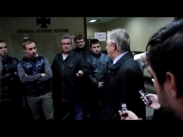 Кроме полсотни журналистов, на проходной СБУ лидера Компартии дожидались три мужчины. Судя по росту, короткой стрижки и разговорам, им поставили задачу охранять Симоненко, как только он выйдет от следователей.