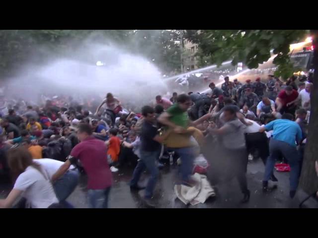 Полиция применила силу после того, как демонстранты ушли с места своей дислокации – Площади Свободы - и перекрыли движение на основной улице Еревана - проспекте Баграмяна. По версии полиции, демонстрантов просили вернуться на площадь, чтобы открыть дорогу транспорту. Люди отказались и в ход пошли водометы. Разгон провели на рассвете умышленно, поскольку основная масса людей разошлась по домам.