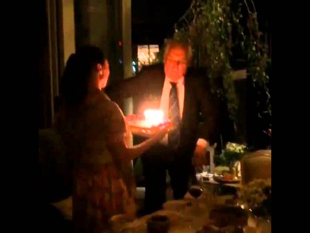 Посетители ресторана успели заснять, как президенту приносят торт с зажженными свечами под песню "К сожаленью, день рожденья, только раз в году" из мультфильма про крокодила Гену.
