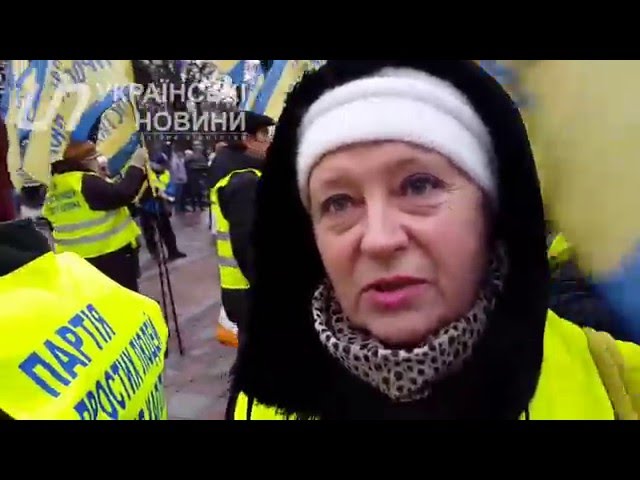 Опубликовано Денисом Пятигорцем 16 февраля 2016 г.Часть митингующих находиться под стенами Рады и у Мариинского дворца еще с утра. К ним прибывают все новые группы людей с плакатами.