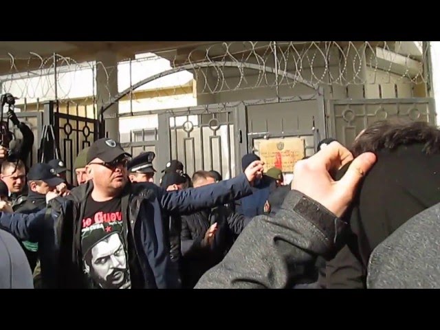 К зданию консульства в Украине подошли несколько сотен митингующих. В руках они несли портреты Надежды Савченко. Сначала митинг был относительно спокойным. Люди разложили несколько баннеров с призывами в адрес российской власти освободить Надежду.