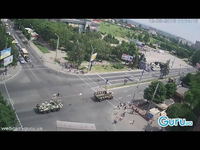 В Мариуполе 12 июня прошел парад военной техники в честь годовщины освобождения города. По городу проехалась небольшая колона военной техники. На технику была нанесена символика отдельного отряда специального назначения Нацгвардии "Азов".
