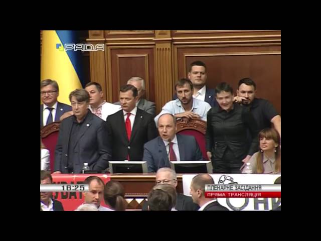 Фракции Радикальной партии и "Батькивщины" во главе со своими лидерами Олегом Ляшко и Юлий Тимошенко заблокировали трибуну и президиум Верховной Рады Украины, а также президентское место в сессионном зале парламента. Об этом сообщили народные депутаты в Фейсбуке.
