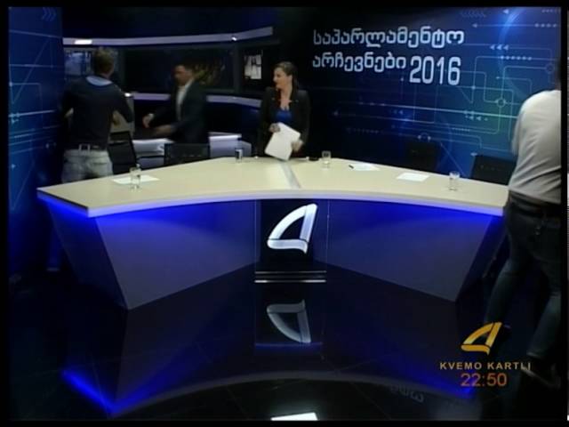 Сначала политики - представитель "Демократического движения" Вепхия Гургенишвили и "Блока промышленников" Полад Халиков, обсуждали в формате дебатов наболевшие вопросы и проблемы страны эмоционально, но не вставая со своих мест. Через несколько минут дискуссия стала настолько жаркой, что будущие парламентарии перешли на личности и стали оскорблять друг друга. В итоге Халиков подорвался со своего места и набросился с кулаками на оппонента. Их разняла съемочная группа телеканала.