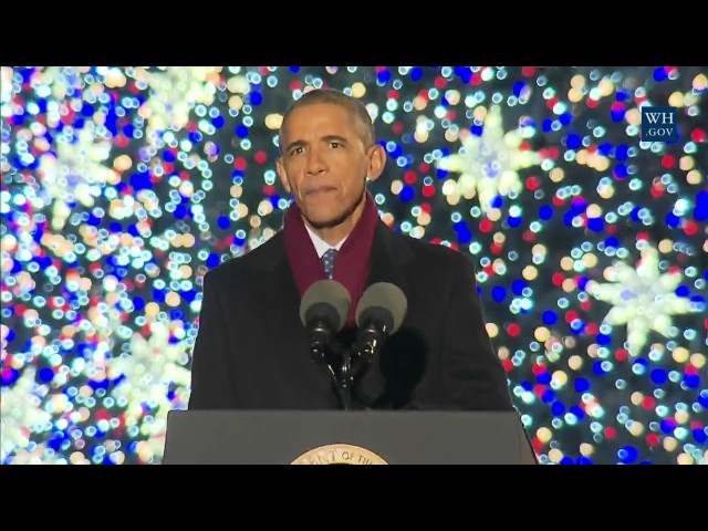 Президент США Барак Обама поздравил жителей на церемонии зажжения огней на главной елке в Вашингтоне. Американский лидер исполнил "Jingle Bells" вместе с другими гостями. Видео появилось на официальном канале Белого дома.