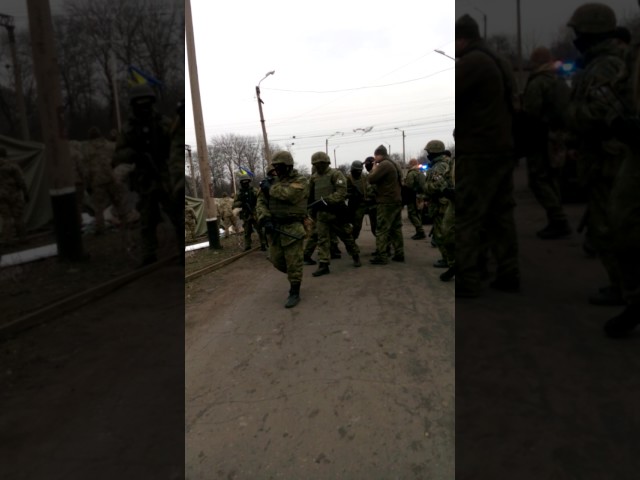 В Интернете появилось видео, на котором видны силовики с автоматами в районе блокады Донбасса. Записи на канале youtube опубликовала пользователь Юлиана Коптиева.