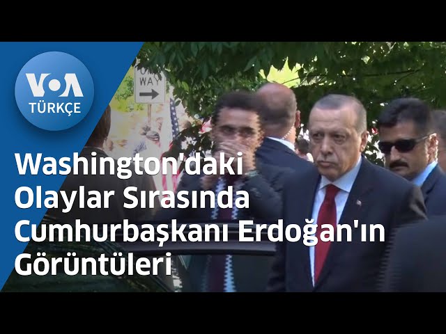 Эрдоган прилетел в Вашингтон 16 мая, где встретился с президентом США Дональдом Трампом. Напротив резиденции турецкого посла в Вашингтоне произошла драка с участием личной охраны турецкого президента и протестующими, предположительно сторонниками запрещенной в Турции Рабочей партией Курдистана. Американские СМИ писали, что драку спровоцировали охранники Эрдогана. В результате около десяти человек получили травмы.