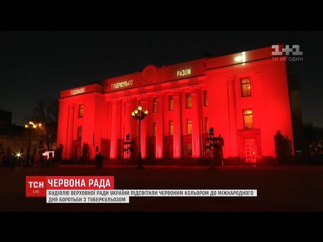 Верховную Раду Украины подсветили красным цветом по случаю Дня борьбы с туберкулезом. На самом верху здания размещается надпись "Победим туберкулез вместе". Об этом 22 марта сообщили ТСН.
