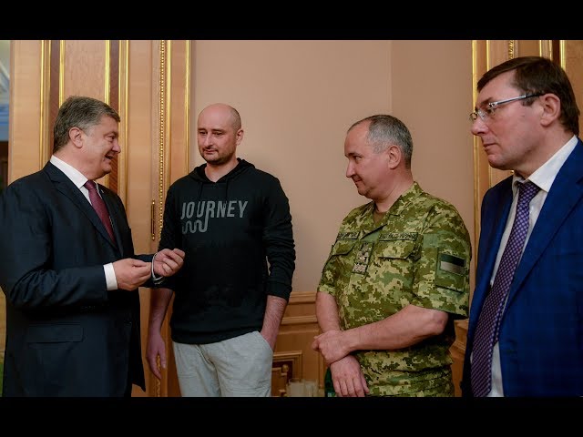 После брифинга СБУ, на котором стало известно, что убийство Аркадия Бабченко было инсценировкой, журналист отправился к президенту. Фотографии и видео встречи разместили в социальных сетях Петра Порошенко.