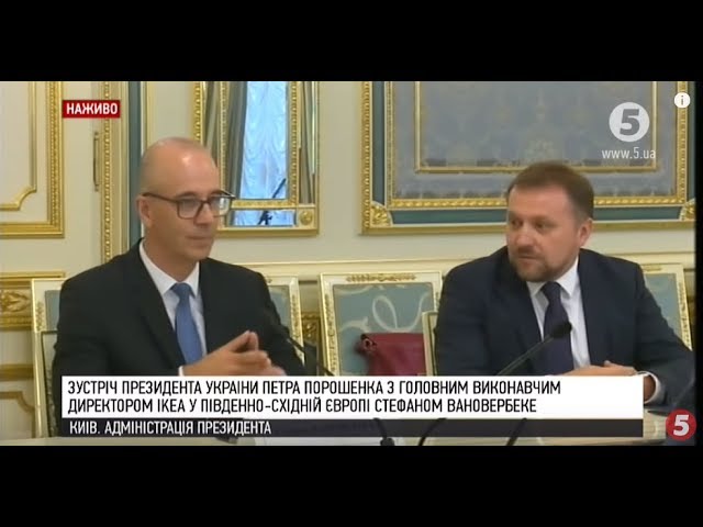 Петр Порошенко встретился с представителем ИКЕА в Администрации президента 12 сентября. Главный исполнительный директор компании в юго-восточной Европе Стефан Вановербеке подтвердил, что магазин откроется в 2019 году. Петр Порошенко заявил, что Украина договаривалась со шведским магазином мебели 13 лет.