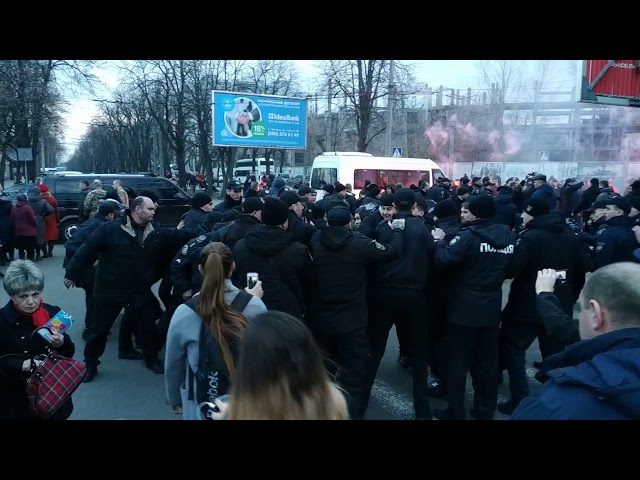 Местный лидер "Нацкорпуса" взобрался на капот патрульного автомобиля, который ехал в составе колонны, но его быстро оттуда сняли. По данным местных СМИ, из толпы выводили людей, в частности - полицейских в плохом состоянии.