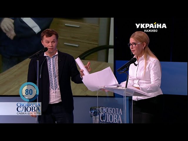 Во время дисскусии Милованов обвинил Тимошенко в искажении информации, а также высказал свои подозрения в том, что она принимала участие в революции 1917-го года.