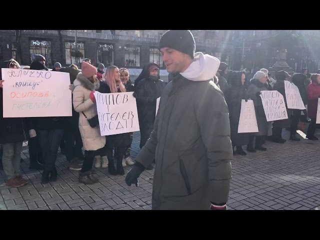 Протестующие держат плакаты "Осипов и Густелев - воры", "Осипов Густелев Кличко = коррупция!", "Кличко "крышует" Осипова и Густелева", "Осипова и Густелева – на нары!" и "Кличко потерял стыд!"