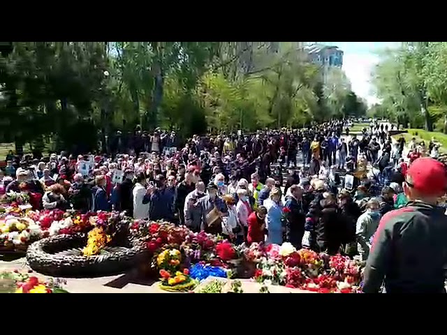 Усиленные наряды полиции дежурят у памятника генералу Пушкину (танка) и монумента Славы с самого утра. В громкоговоритель днепрян предупреждают о необходимости соблюдения правил гигиены и личной дистанции. Возле памятника Славы не многолюдно – большинство днепрян решили отпраздновать годовщину Дня победы над нацизмом дома. Тем же, кто решил возложить цветы к монументу, подходят пройти к вечному огню через защитный барьер. Сотрудники полиции пропускают по нескольку человек при условии соблюдения социальной дистанции.