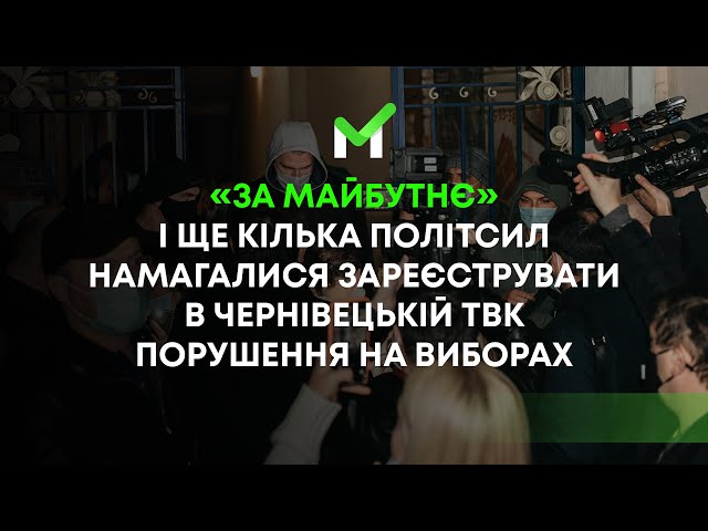 27 октября представители Черновицкого отделения политической партии "ЗА МАЙБУТНЄ" и еще нескольких политсил пытались зарегистрировать в городской ТИК нарушения, которые были зафиксированы во время выборов 25 октября. Однако, люди спортивного телосложения, которые оказывали сопротивление кандидатам в депутаты и не пропускали их на заседание ТИК. В то же время представитель партии "Альтернатива", вопреки закону, определяла вместе с молодыми людьми, кто имеет право зайти в помещение ТИК. В конце концов, после долгих споров представителям политсилы "ЗА МАЙБУТНЄ" удалось попасть на заседание комиссии.