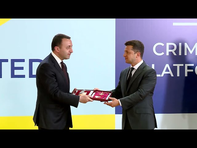 - Президент Украины Владимир Зеленский наградил премьер-министра Грузии Ираклия Гарибашвили орденом "За заслуги" первой степени в рамках саммита @Крымской платформы", - говорится в сообщении.