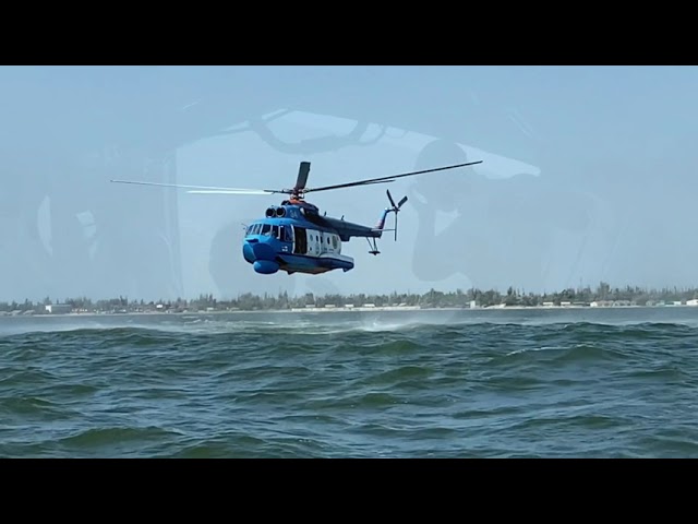 Помимо десантирования, спецназовцы также отрабатывали имитацию спасательной операции с эвакуацией лиц, нуждающихся в помощи в открытом море. Спускаясь с вертолета на специальном спусковом устройстве, военнослужащие поднимали из воды друг друга, отрабатывая ситуации как с активным человеком, который противодействует морской стихии, так и с имитацией обессиленного или раненого пострадавшего.
