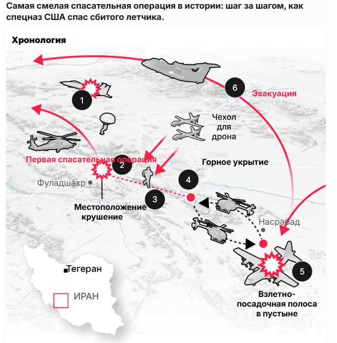 В пятницу над Ираном был сбит американский истребитель F-15E Strike Eagle. Два пилота катапультировались. Спасательная операция была эпичной, с потерей техники на сотни миллионов долларов. Подобности поисков (все закончилось хорошо), и как нервничал Трамп – в статье Коротко про.