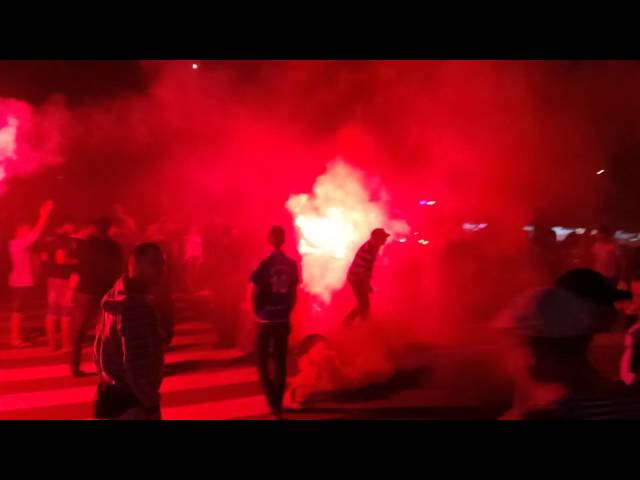 Обрадованные болельщики ночью собрались у терминала одесского аэропорта, чтобы встретить "моряков". В ожидании рейса из Тираны около сотни человек жгли файеры и скандировали лозунги любимой команды. Когда диспетчер объявил о посадке борта, они гурьбой ринулись внутрь здания. Здесь под бой барабанов, свечение красный файеров и "кричалки" состоялась встреча с победителями. Фанаты плотным кольцом обступили игроков и стали обливать их шампанским. Футболисты пытались закрыться от струй пенящего напитка, но все было тщетно. После этого фанаты стали ждать выхода главного "кузнеца" победы клуба – тренера Романа Григорчука, скандируя его фамилию. Наставник был немного смущен таким вниманием к себе, но не отказался обняться с желающими. После того, как автобус с футболистами уехал, фанаты разъехались по домам.