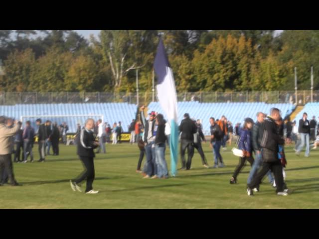Никакого ущерба болельщики наносить газону не собирались, но порядок есть порядок. Закончилось это тем, что стюарды построились цепью и вытеснили толпу с поля. Впрочем, сопротивления никто не оказывал.