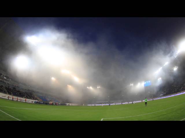 Из-за едкого дыма, который навис над полем, арбитр остановил игру и увел команды в техническую зону. Через четыре минуты, когда облако рассеялось, поединок был продолжен. Напомним, "Днепру" в последнем матче сезона не удалось обыграть "Олимпик", встреча закончилась вничью. На гол Шахова, который вывел одноклубников на поле с капитанской повязкой, гости смогли ответить во втором тайме, и счет 1:1 продержался до конца игры.