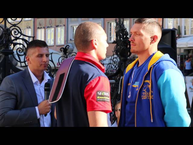 Александр Усик и его польский оппонент Кшиштоф Гловацки провели в Гданьске дуэль взглядов накануне битвы за чемпионский пояс, которая назначена на 17 сентября. Отметим, что 30-летний польский чемпион мира WBO первым отвел взгляд.