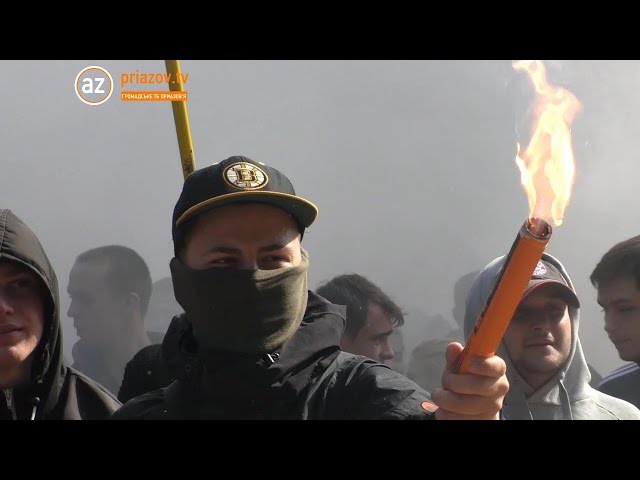 Ультрас мариупольского клуба принципиально никогда не употребляли современного названия, называя его "Металлургом". Во время марша, кроме традиционных зарядов, звучал также призыв "Требование нации - декоммунизация".