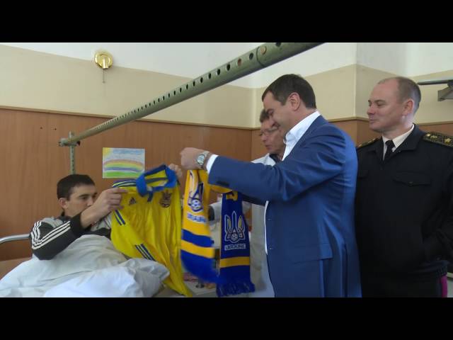 Президент ФФУ Андрей Павелко лично поздравил бойцов, которые находятся на лечении, с Днем защитника Украины, и передал им подарки от Федерации футбола Украины: футболки с шарфами сборной и продуктовые пайки.
