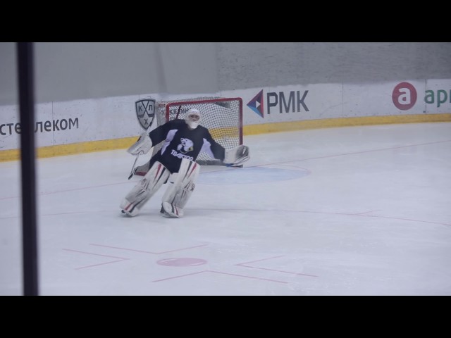 Голкипер челябинского "Трактора" продемонстрировал на тренировке навыки фигурного катания. Когда зазвучал вальс Штрауса, спортсмен принялся за танцы, чем повеселил своих партнеров по команде.