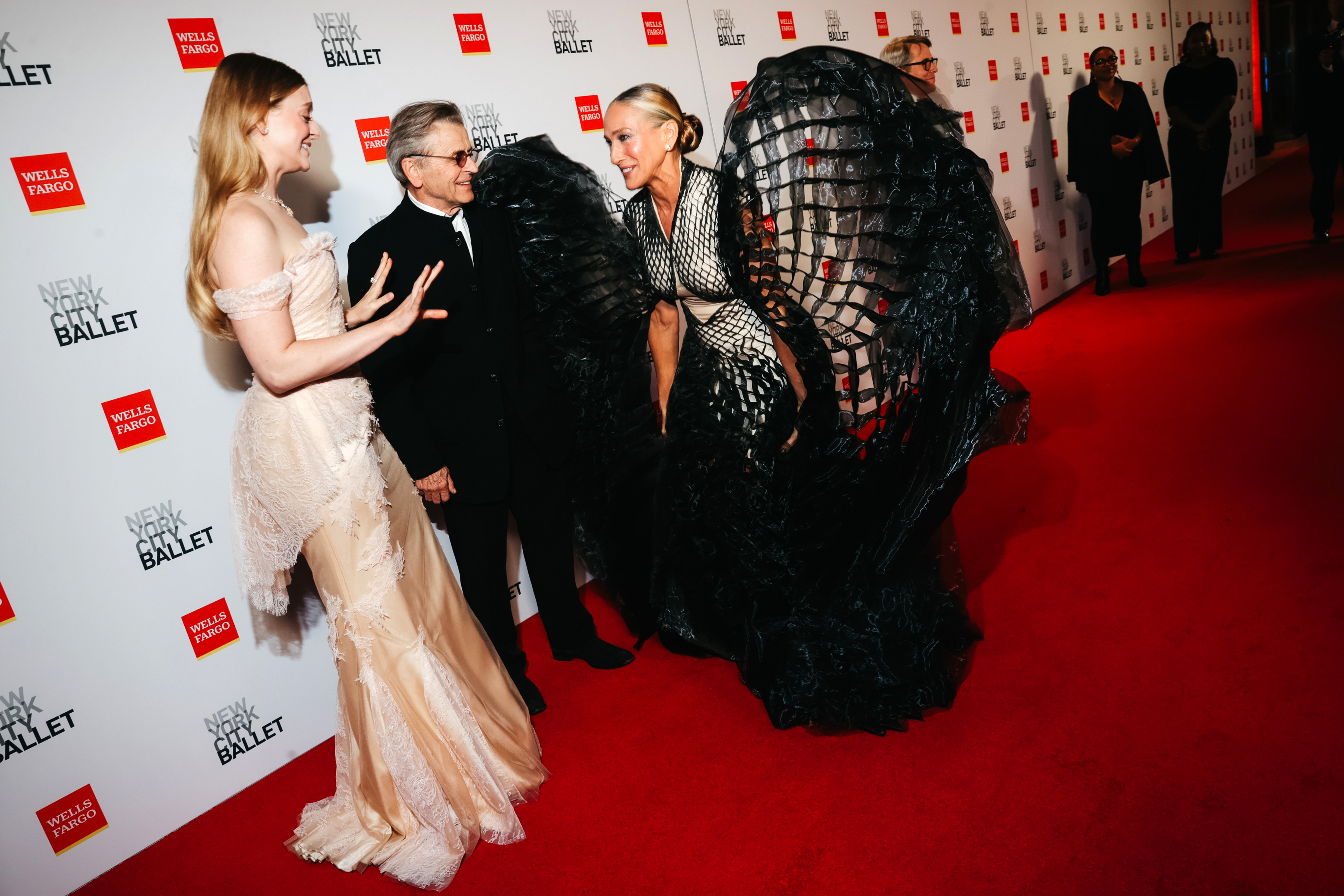 Джессіка Паркер з'явилася на заході у "крилатому" вбранні від нідерландського дизайнера Іріс Ван Харпен, а Баришников прийшов у фраку в компанії дочки Анни.