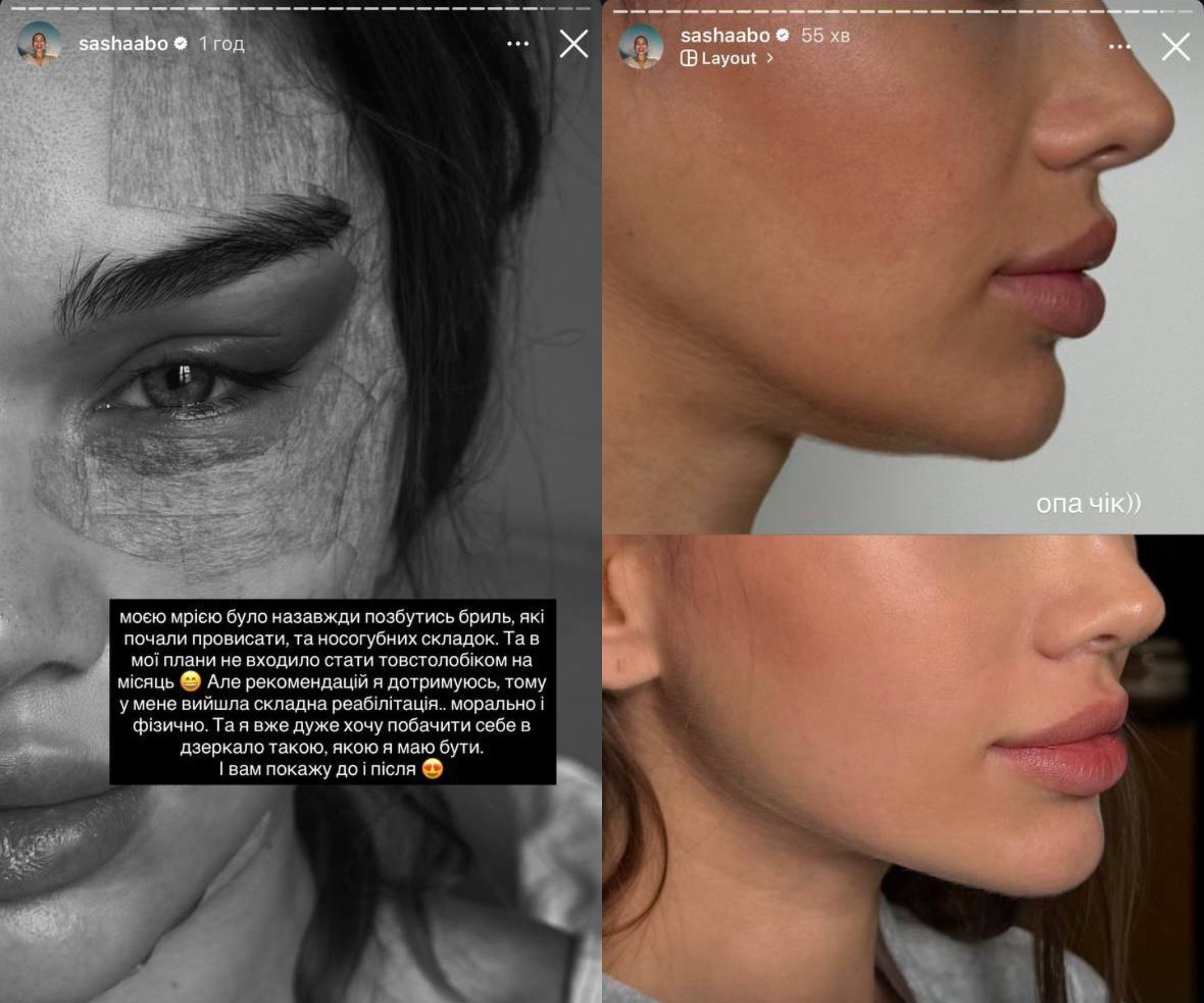 Саша Бо наголосила, що наважилася на операцію, оскільки її не влаштовували брилі, які почали провисати, та носогубні складки.