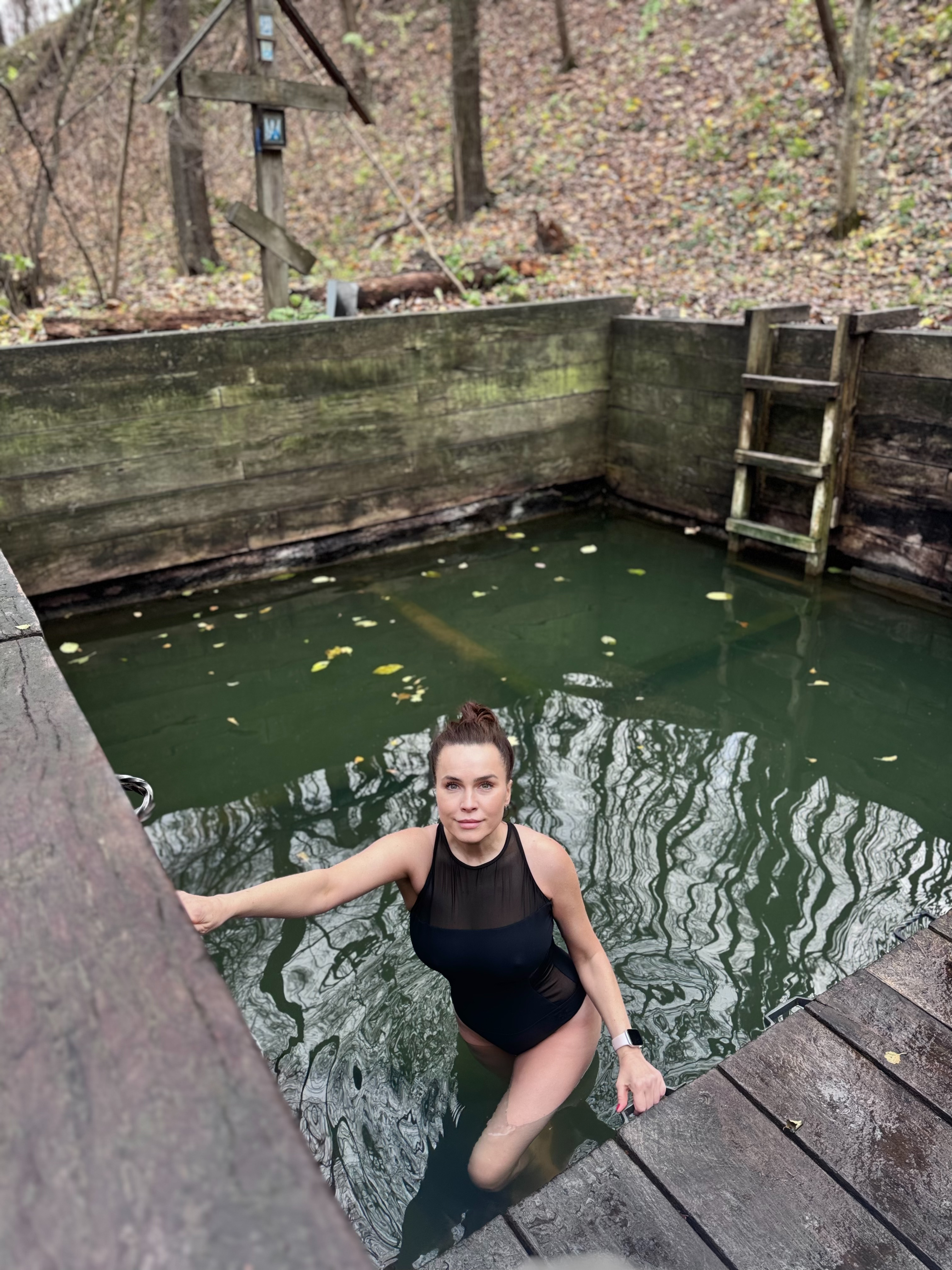 Почала піклуватися про тіло. На початку війни випадково дізналась, що в мене підвищився рівень кортизолу в 14 разів від максимальної лінії. Лікар сказав, що довго так не протягну, десь це вистрелить, неочікувано і боляче. Обрала для себе холодні процедури. Тепер обов'язково в будь-яку погоду і пору року приймаю крижані джерельні ванни у відкритій купелі у лісі.
