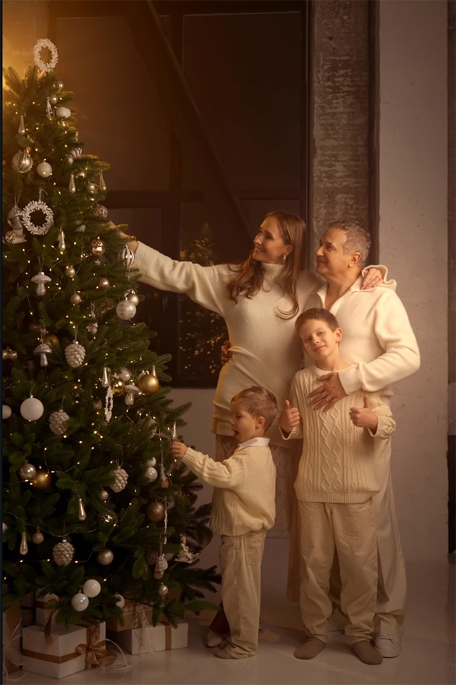Катерина Осадча та Юрій Горбунов теж традиційно прикрашали ялинку з синами Іваном та Данилом.