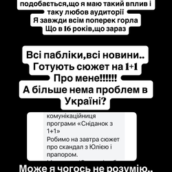 - Ви думаєте, це все просто так? Що це справа рук просто підписників? Мене хочуть прибрати на державному рівні, бо дуже не подобається, що я маю такий вплив і таку любов аудиторії. Я завжди всім поперек горла. Що в 16 років, що зараз. Всі пабліки, всі новини готують сюжет на "1+1" про мене! А більше нема проблем в Україні? - емоційно звернулася до підписників Верба.