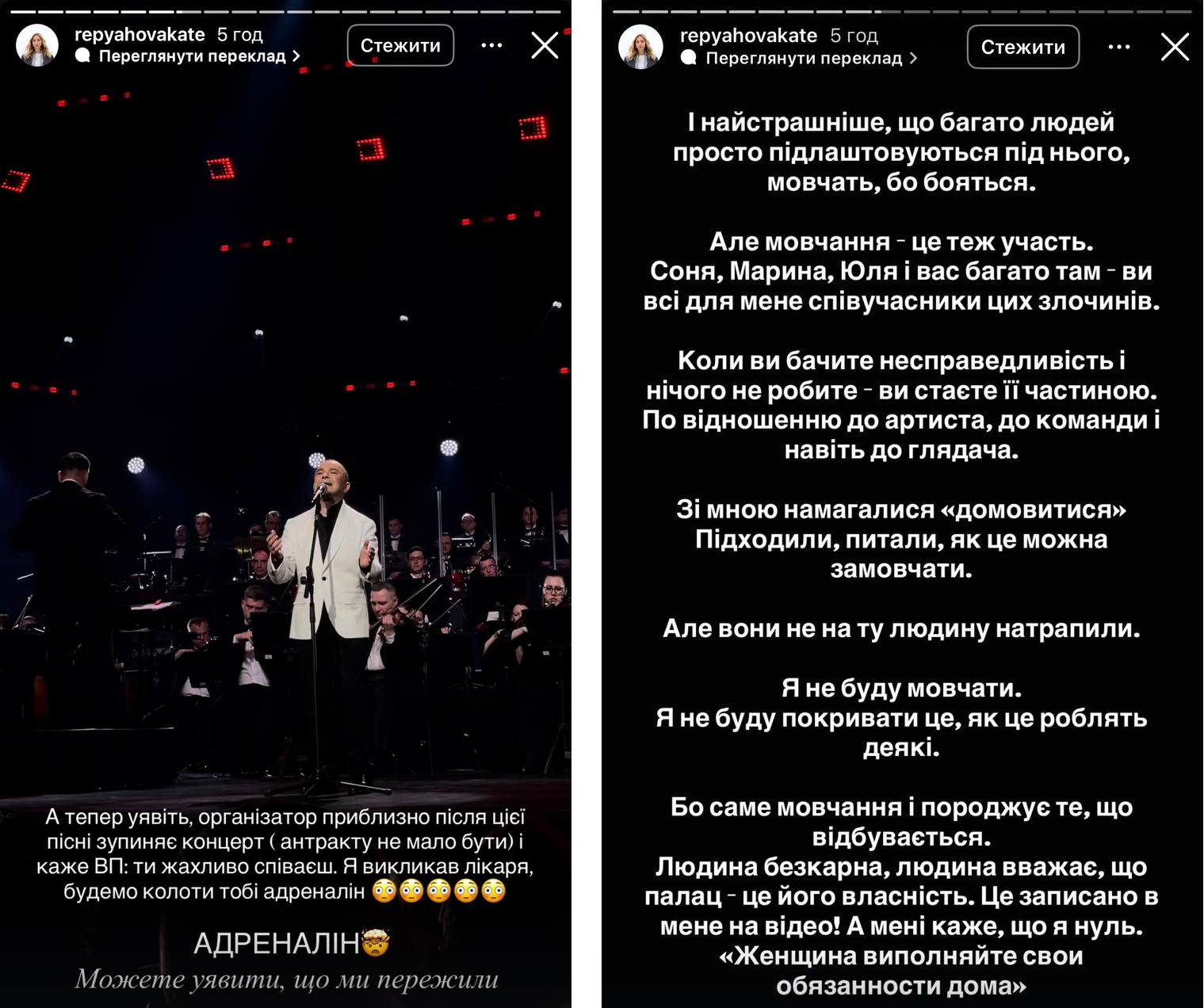 Катерина Реп’яхова висловила своє обурення роботою команди. Фото: Скрін Інстаграм Катерина Реп’яхова