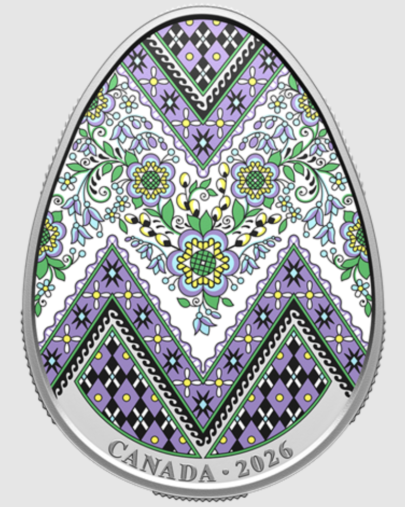Королівський канадський монетний двір випустив оригінальну срібну монету у формі української писанки. Вартість такої монети – 299.95 канадських доларів. Про це повідомляє сайт Королівського канадського монетного двору.