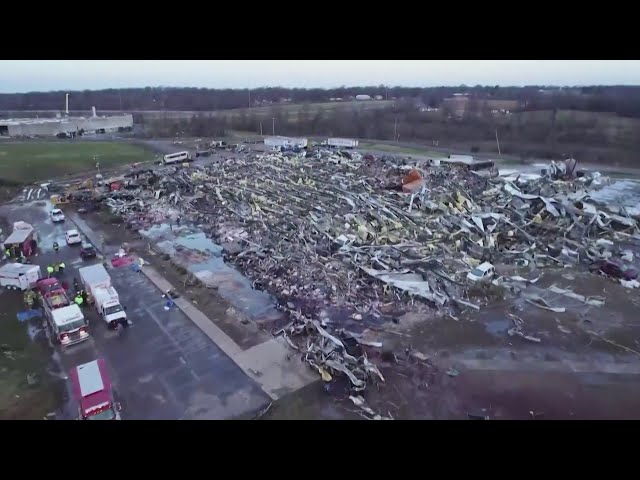 Губернатор штату назвав торнадо, які пройшли півднем США в п'ятницю, найруйнівнішими в історії. Серед міст найбільше постраждав Мейфілд, там обвалився дах на свічковому заводі, повністю зруйновано поліцейську дільницю, пожежну станцію, житлові будинки та адміністративні будівлі.